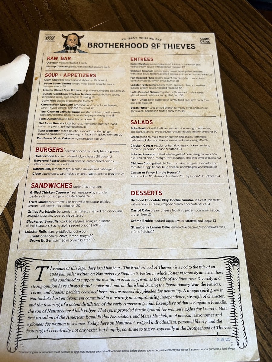 Next time you're on Nantucket, make sure to stop by Brotherhood of Thieves. Whether it’s lunch, dinner, or just a drink at the bar, you're guaranteed an experience that will linger in your memory long after your visit. You might just find a new home for your culinary cravings!
